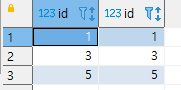 inner join unnest(array[1,3,5]) as t2(id) using(id)
