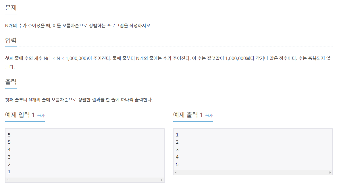 해당 문제는 시간 제약이 있었기 때문에 Arrays.sort()를 사용할 경우 시간초과 문제가 발생할 수 있다. (뒤에 Arrays.sort()를 사용하여 푸는 방법도 설명해두었다.)
