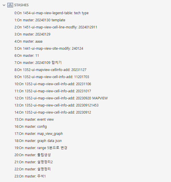 소스트리에서 Git Statshes를 너무 많이 지정해두어서 하나하나 삭제하는 게 너무 어렵겠다 싶어서 한번에 삭제하는 방법에 대해 알아보았습니다.