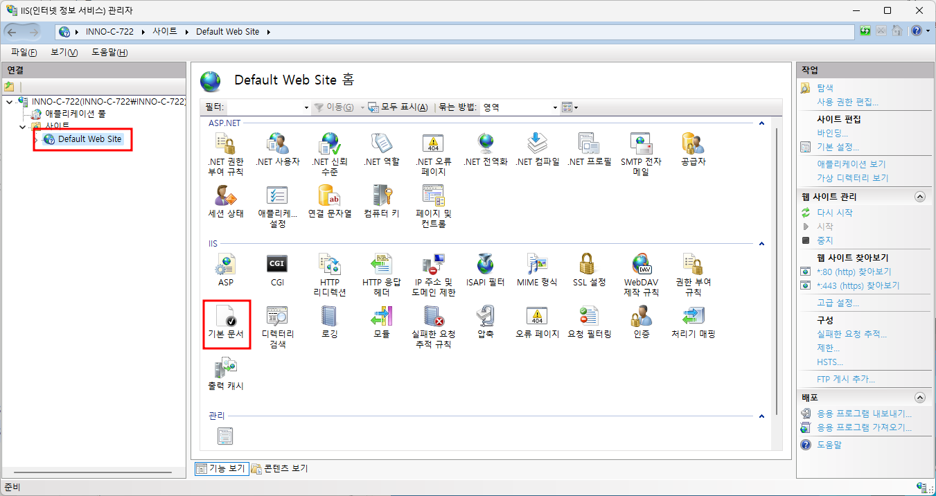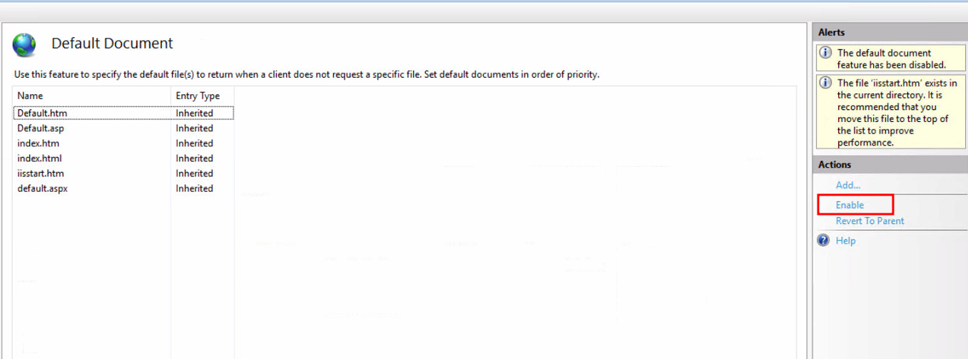 1) Default > 기본 문서 > enable이 표시되도록 한다.